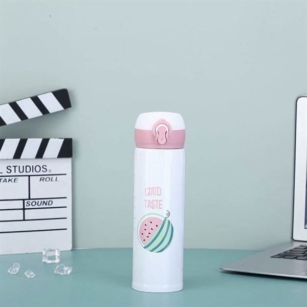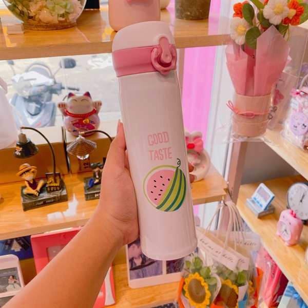 Bình giữ nhiệt trắng họa tiết dưa hấu