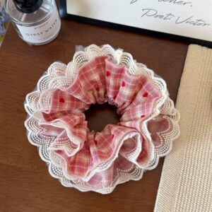 Scrunchies caro hồng-viền ren
