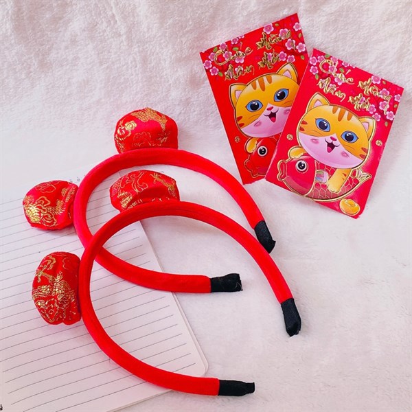 Cài tóc nơ đỏ tết
