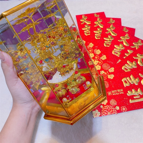/ Cây cành vàng hộp kính có đèn