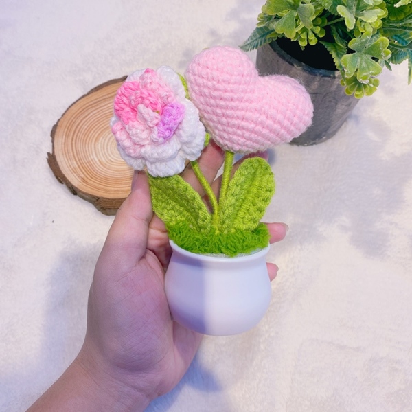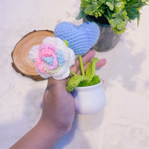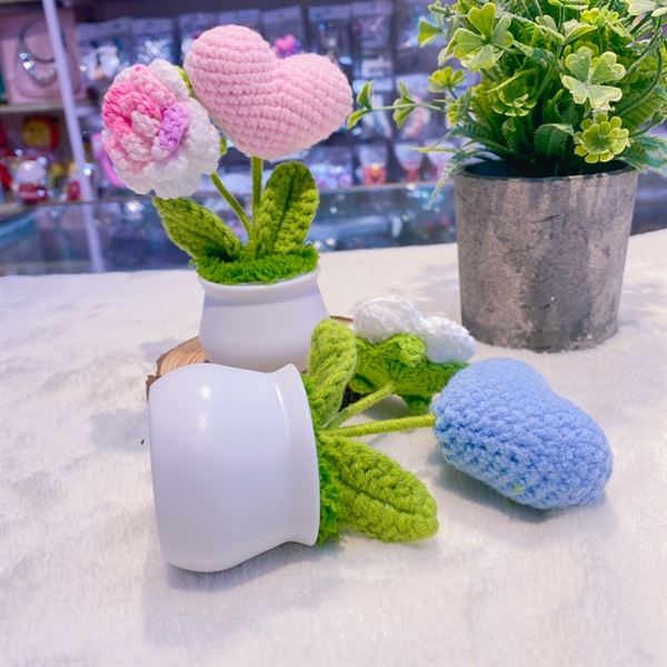 / Chậu hoa len+tim hồng,xanh