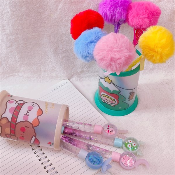 Bút bi 10 màu đầu thỏ kim tuyến