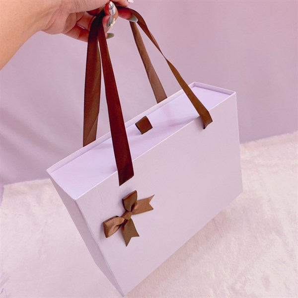 / Hộp quà tặng màu trắng gắn nơ nâu (vừa)