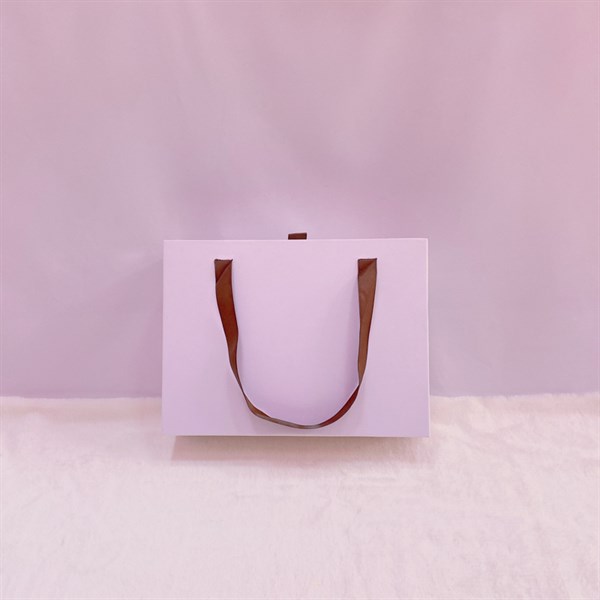 Hộp quà tặng màu trắng gắn nơ nâu (vừa)