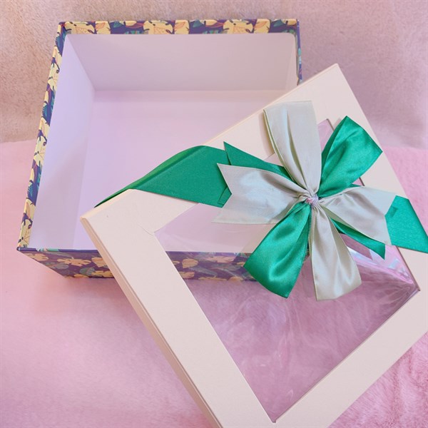 Hộp quà vuông kiếng size 22x22x11cm