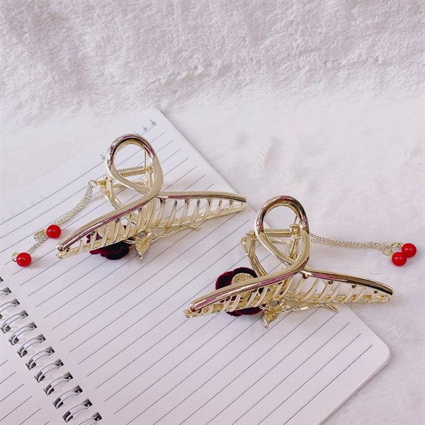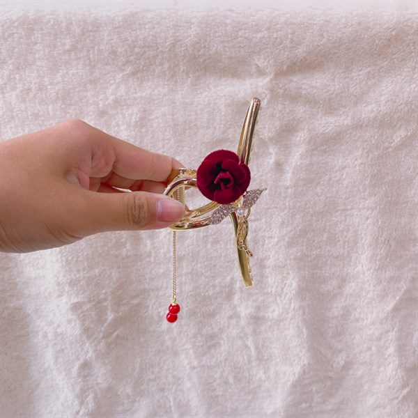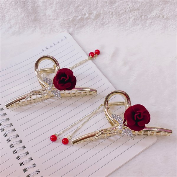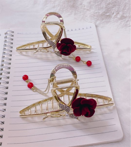 / Kẹp gấp kim loại đính hoa hồng đỏ