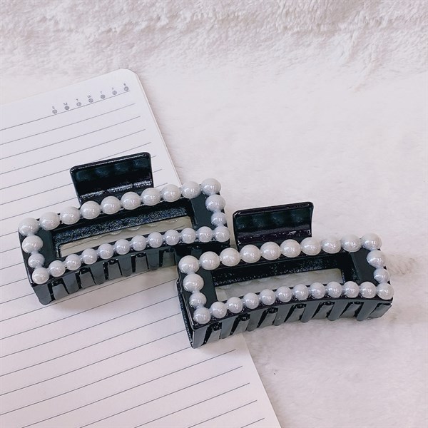 / Kẹp gấp nhựa đen đính ngọc trai