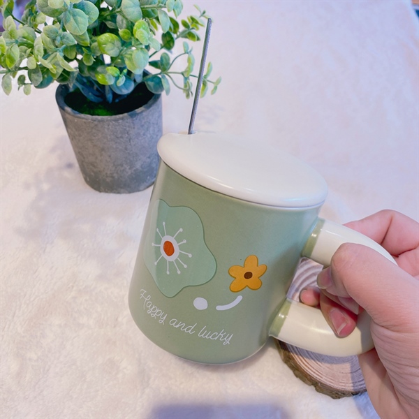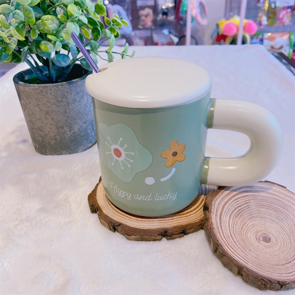 Ly Sứ Hổ Đáng Yêu Kèm Nắp 400ML – Cam nhạt