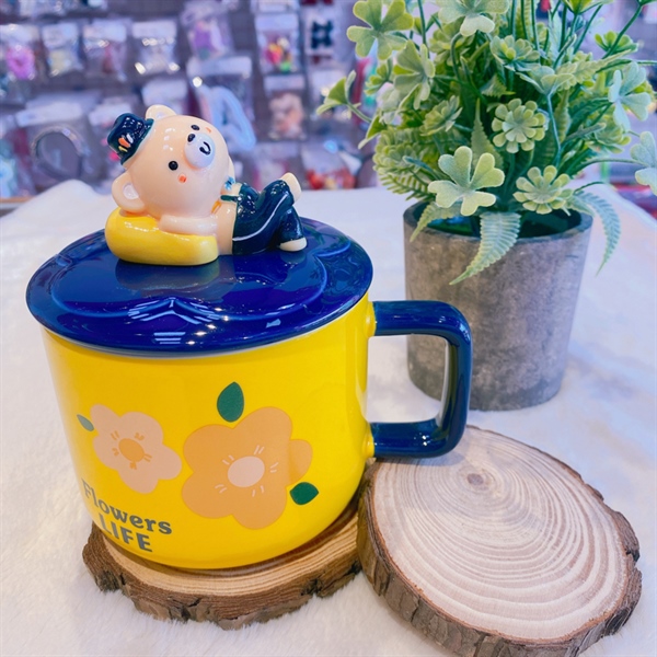 Ly Sứ Hổ Đáng Yêu Kèm Nắp 400ML – Cam nhạt