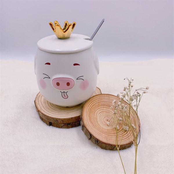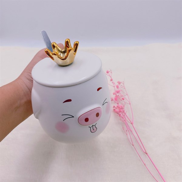 / Ly sứ bé heo đội vương miện kèm muỗng 9401