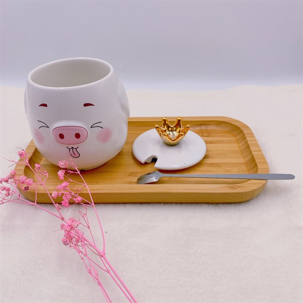 Ly sứ bé heo đội vương miện kèm muỗng 9401