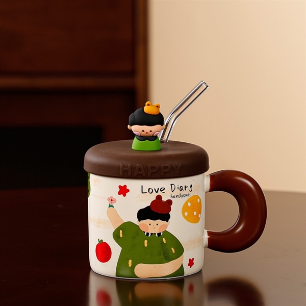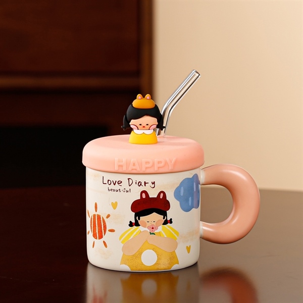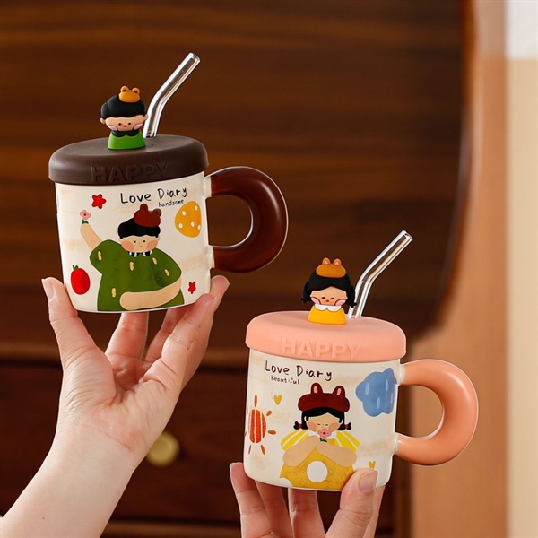 Ly Sứ Hổ Đáng Yêu Kèm Nắp 400ML – Cam nhạt