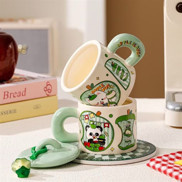 / Ly sứ Gấu Trúc Táo-kèm móc khóa