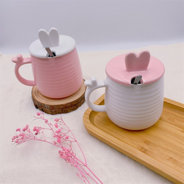 Ly Sứ Hổ Đáng Yêu Kèm Nắp 400ML – Cam nhạt