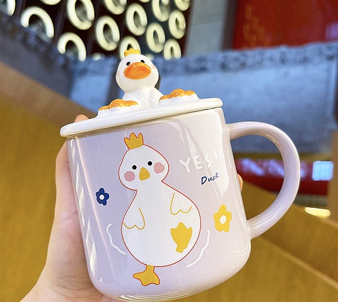 / Ly Sứ Văn Phòng Kèm Nắp Hoạ Tiết Vịt Cute 420ML – Tím