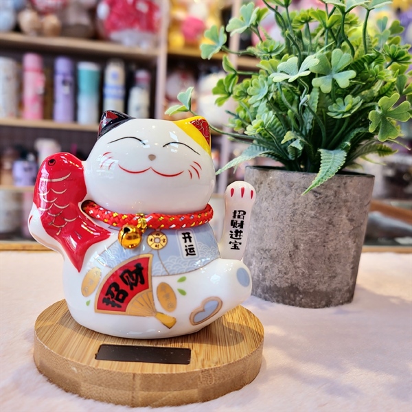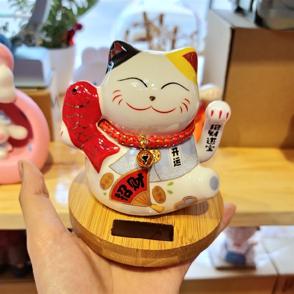 Mèo may mắn đế gỗ 39 ( cá)