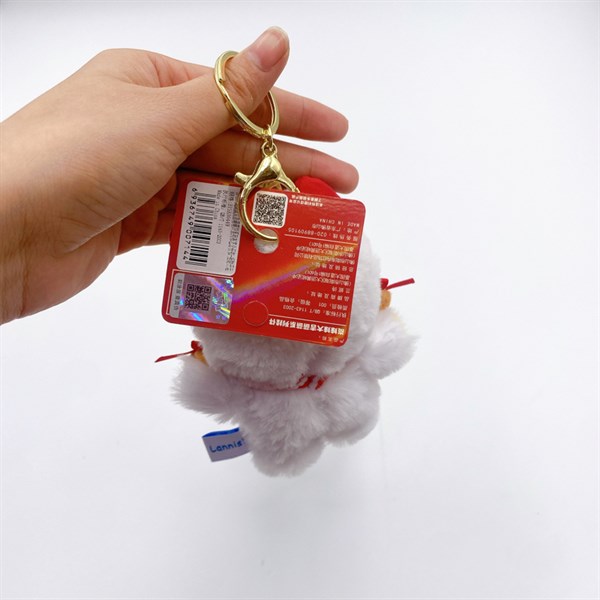 Móc khóa thỏ bông mặc áo lân đỏ