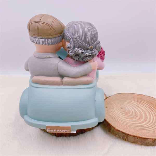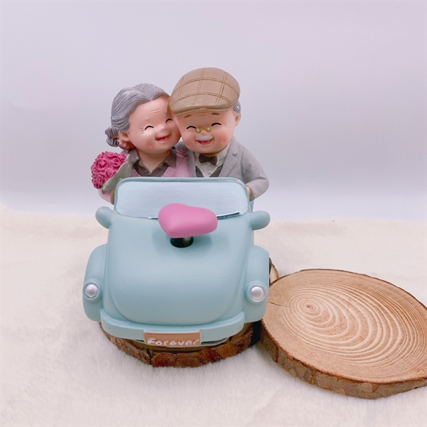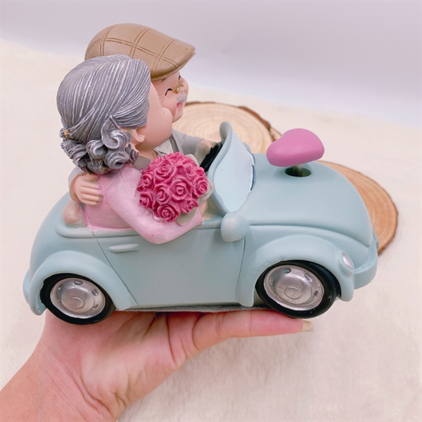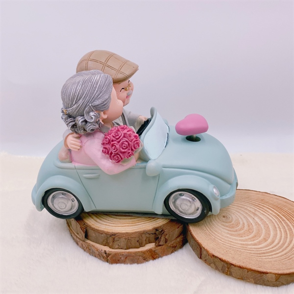 Ông bà hiện đại đi xe ô tô có nhạc