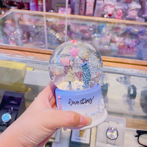 Quả cầu thủy tinh hoa khô có đèn (15cm)