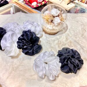 Scrunchies xanh-viền lụa