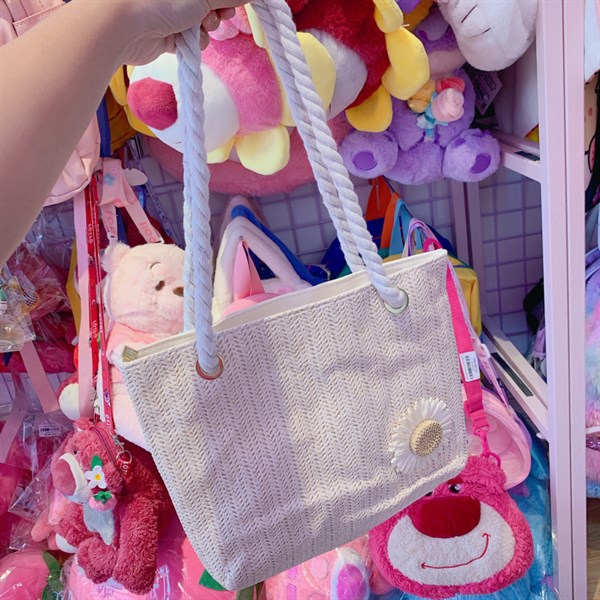 / Túi cói lớn đính hoa T05