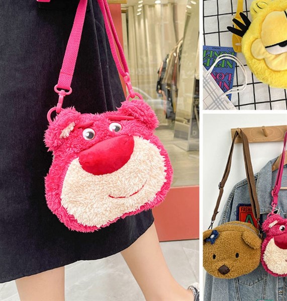 Túi thú bông mặt gấu dâu size 22x17cm