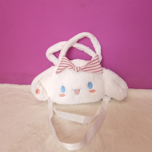 / Túi thú bông Melody trắng gắn nơ size 20x17cm
