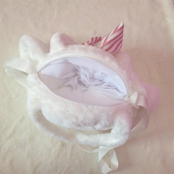 Túi thú bông Melody trắng gắn nơ size 20x17cm