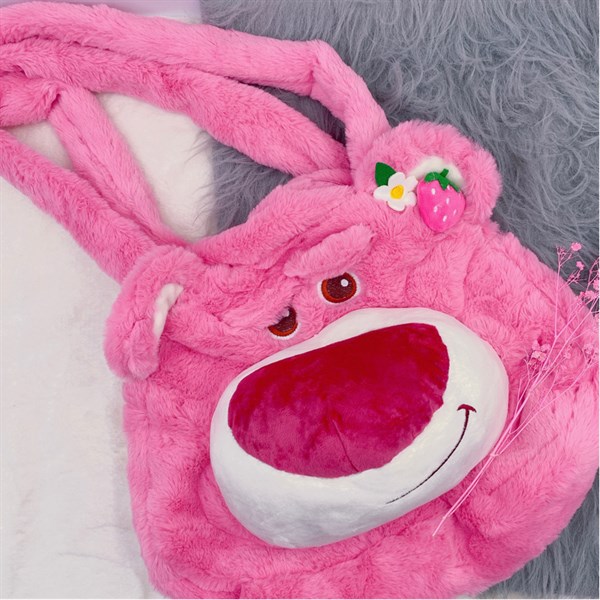 Túi xách thú bông gấu dâu lớn size 33x33cm